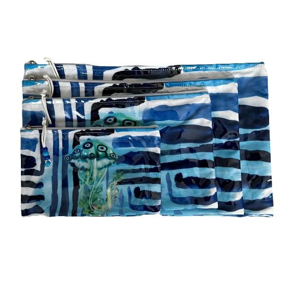 Blue Jellyfish Eye Waterproof Pouch Set of 4